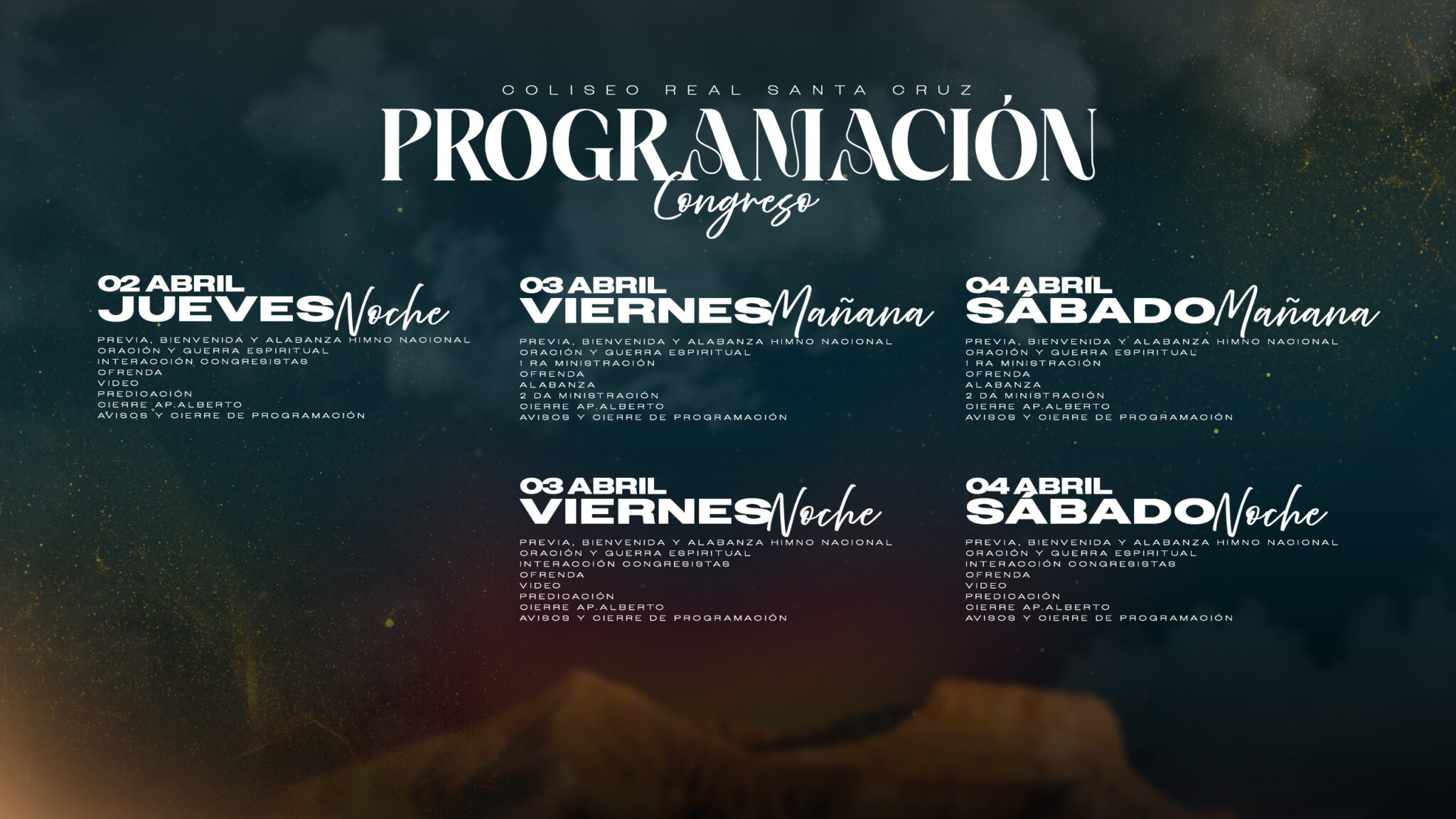 ¡Únete al congreso de Rescate de la Nación este mes de agosto y se parte del cambio que nuestro país necesita! Toma en cuenta que tenemos el paquete FAMILIAR con la promoción del 50 % apartir del 4To miembro de nuestra familia y así garantizar una experiencia enriquecedora y transformadora, para todos.